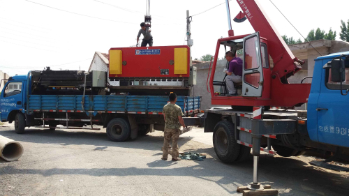 北京設備裝卸搬運案例之康明斯發電機組人工起重搬運定位